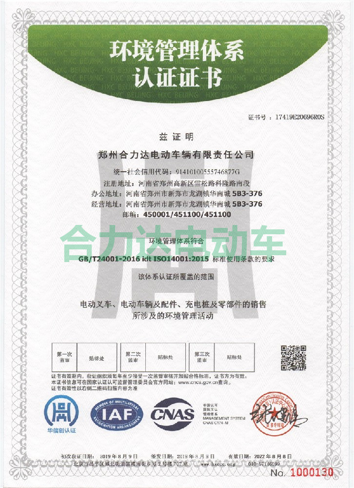 公司已通過國家相關部門頒發的多種體系認證證書,搬運車和蓄電池觀光車取得國家特種設備制造許可證,2011年公司被河南省發改委、科學技術廳、科學院、農科院共同頒發“河南省**科技型企業” 。